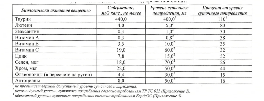 Особую ценность представляет способность добавки защищать глаза от окислительного стресса и поддерживать оптимальный обмен веществ в тканях глаза.