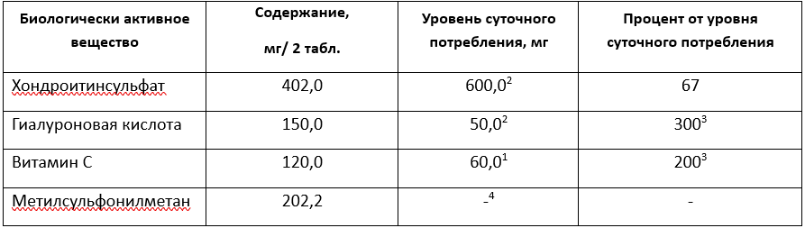 В качестве биологически активной добавки к пище –источника хондроитинсульфата и гиалуроновой кислоты, дополнительного источника витамина С, содержащей метилсульфонилметан.