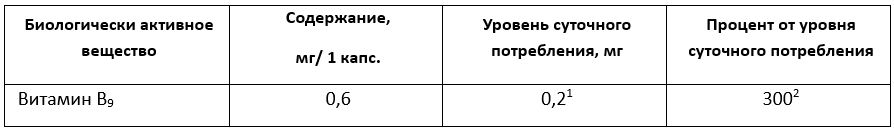 1 норма физиологической потребности согласно МР 2.3.1.0253-21 (п. 5.3; таблица 20). 2 не превышает верхний допустимый уровень суточного потребления. 1 рекомендуемый уровень суточного потребления согласно ТР ТС 022 (приложение 2). 2 не превышает верхний допустимый уровень суточного потребления.